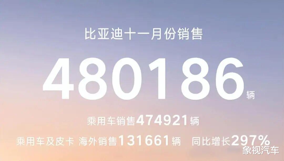 事实上,比亚迪11月热销48万辆,虽然相较去年微降5.24%,但在行业依旧遥遥领先,比第二名多出近20万辆。