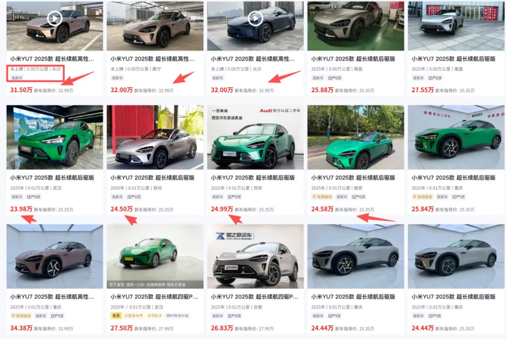 如今YU7准新车破发,也意味着二手市场上流通的车源正持续增加。