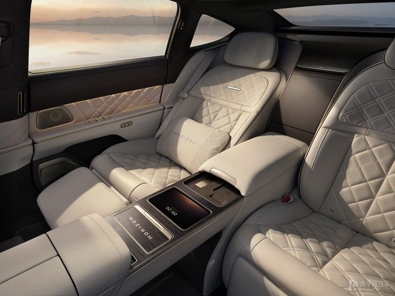 在配置方面,新车配备前后座椅通风/加热/按摩、10升车载冷暖冰箱、全车电吸门、9安全气囊、矩阵式LED大灯、前后多层隔音玻璃、后排隐私玻璃/电动遮阳帘、后排双14.5英寸娱乐屏、3个50W手机无线充电、3D环绕式氛围灯、35扬声器音响系统(总功率2800W)、四区空调、空气净化系统、ARNC主动降噪、方向盘加热、以及超大全景天幕等豪华配置。