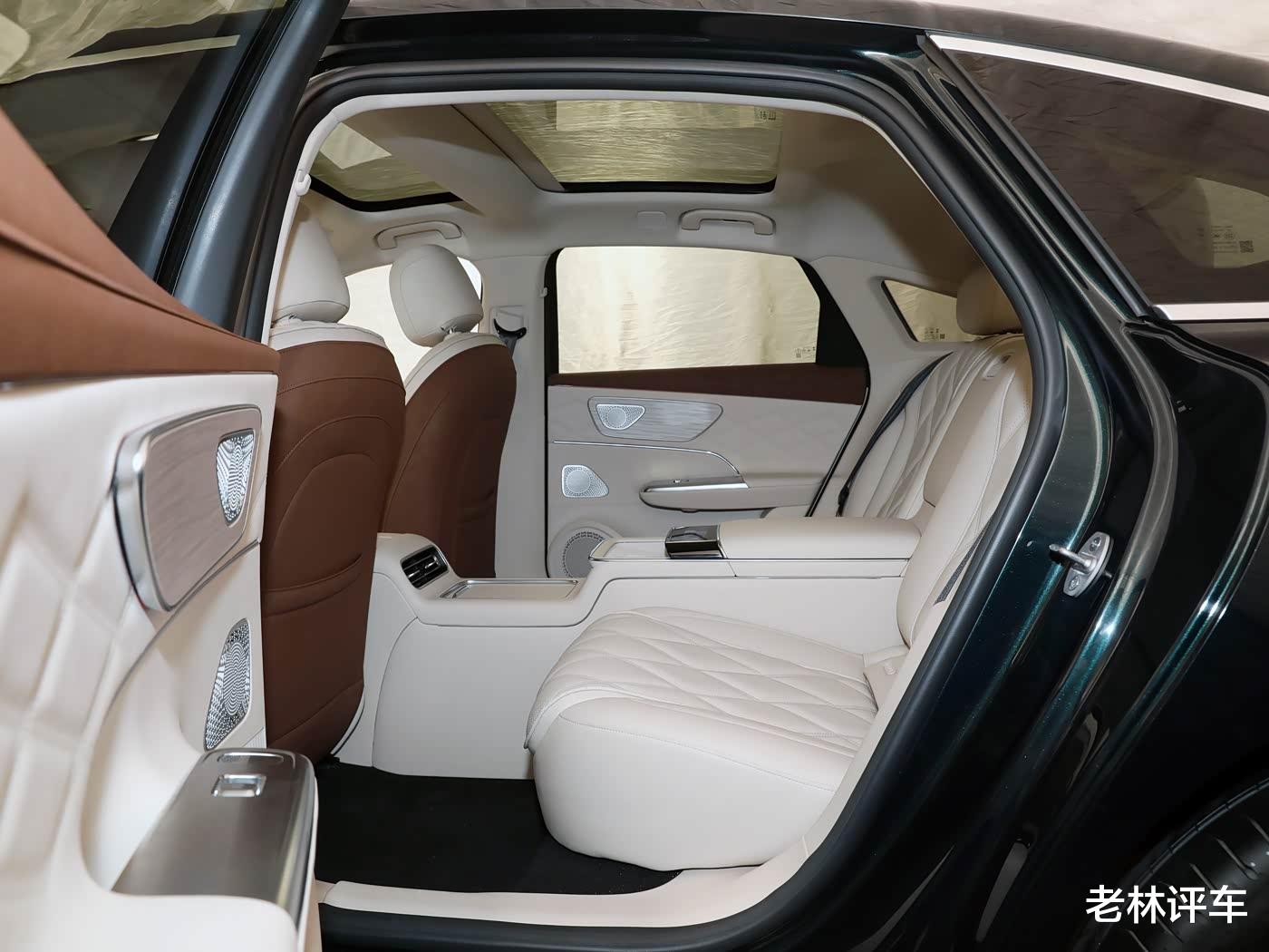 座椅方面,除了5座版车型外,顶配车型是4座版,前后排座椅都支持加热/通风/按摩,第二排座椅支持靠背调节和腿托调节,还配备了车载冰箱。