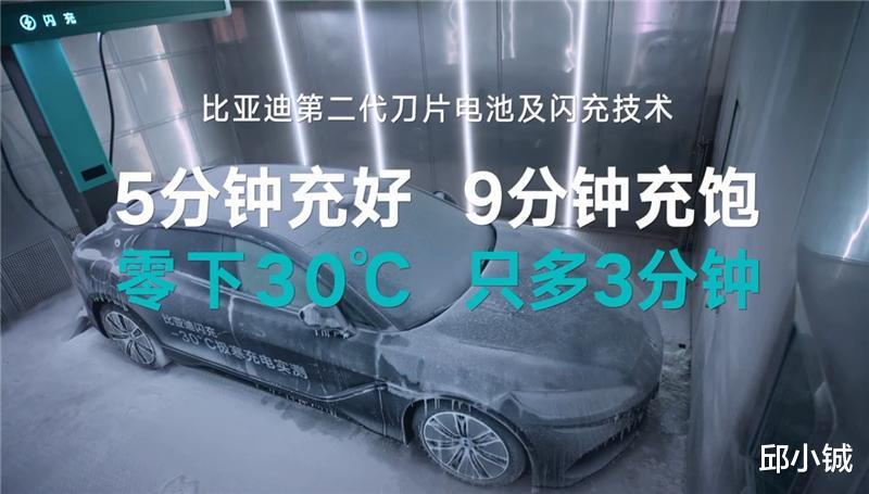 但是比亚迪的闪充,10%充到70%只用5分钟,从10%充到97%只用9分钟,这样的效率的确是降维打击般的存在。另外,比亚迪还骄傲宣布即便是在零下30度的严寒环境中,充饱电只需多花3分钟(从20%到97%闪充耗时约12分钟)。