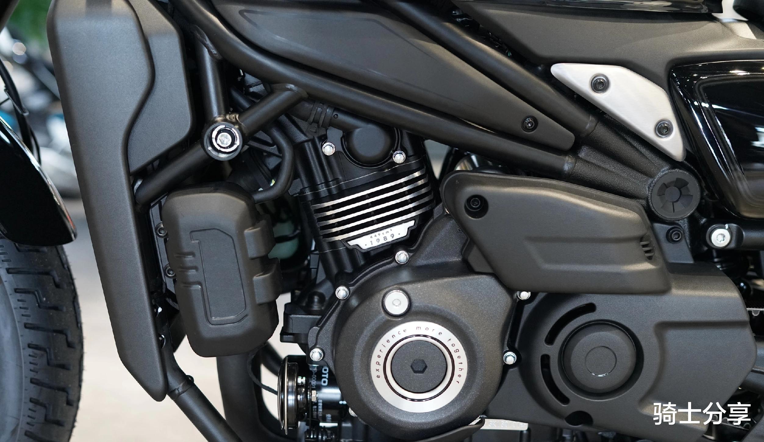 春风的450系列所搭载的是449.5cc的直列双缸引擎,但在不同定位车型上的动力调校有明显区别,两个运动款最大功率为38KW,巡航款则更注重扭力释放,最大扭矩达到了42N·m。