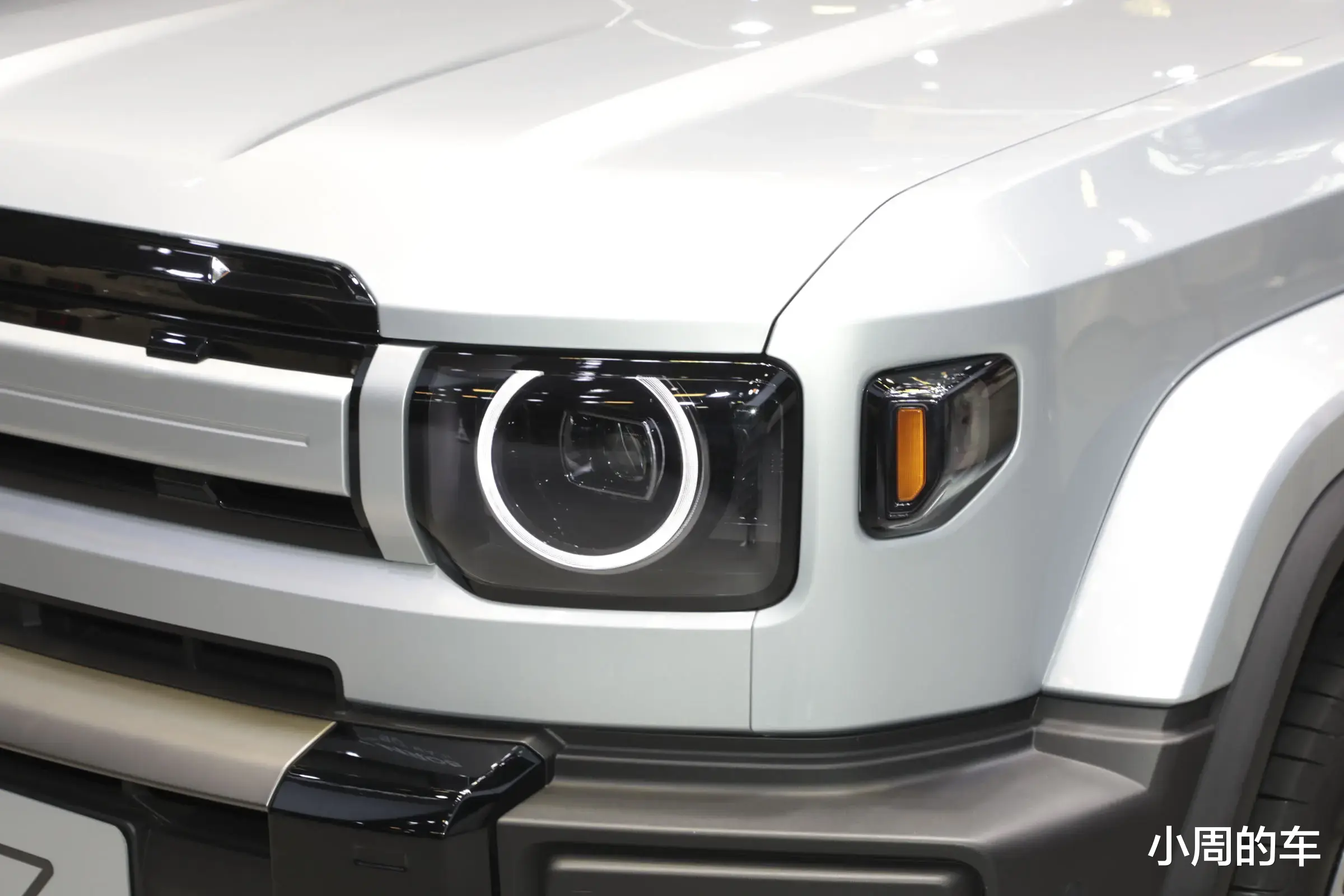 车身侧面为标准的方盒子造型,平直的车顶保证了车内能够有充裕的头部空间,如大部分硬派越野车一样,iCAR V27前后轮眉向外突出并带有棱角分明的造型,不过265/45R21尺寸的轮胎告诉了我们,这仍是一台偏向城市工况使用的SUV车型。