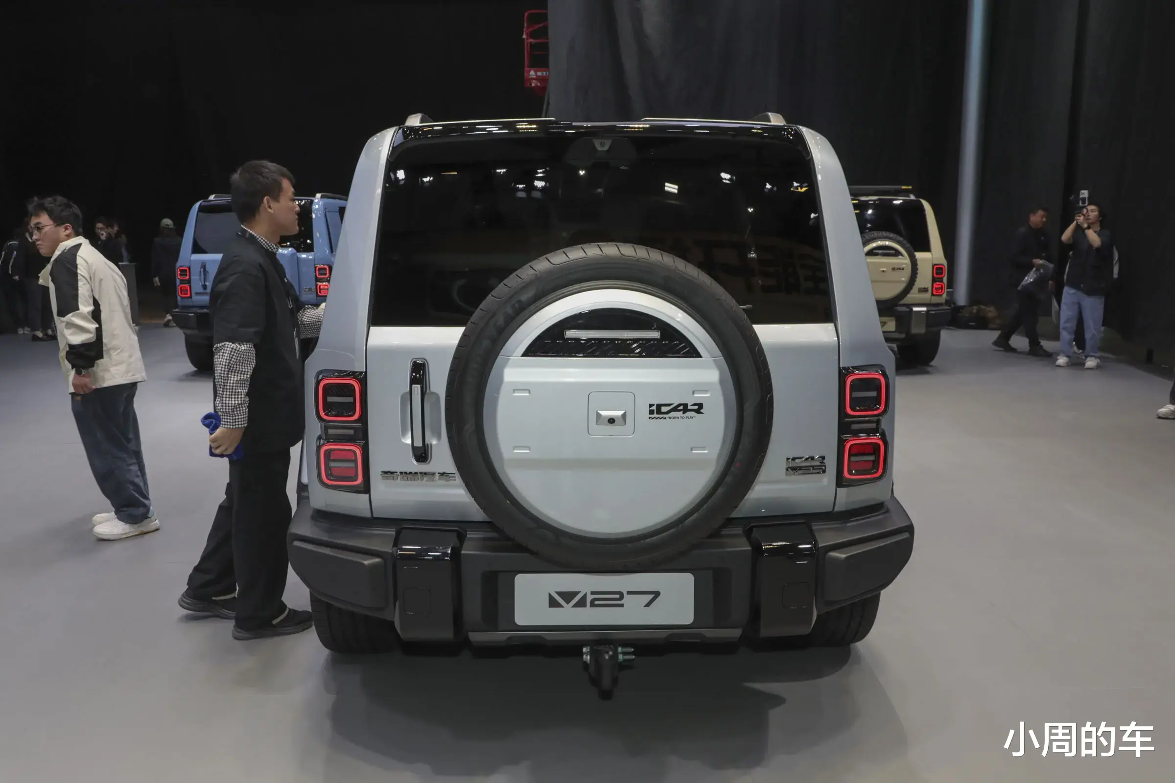 而眼瞅着钛7的火爆,各家车企也加快了对标车型的研发,比如吉利战舰以及今天咱们要说的这台奇瑞iCAR V27,该车在此前已经开启了盲订,除了全系标配有高通8295P芯片和宁德时代电池外,从实车图来看,iCAR V27还罕见的配备了全尺寸备胎。那么,接下来咱们就来详细的聊聊这台车,看即将上市的它(3月13日)能否与方程豹钛7掰手腕呢?