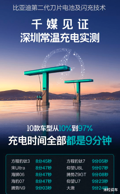 最近一段时间,比亚迪的闪充横空出世,单枪可以达到1500kW的功率,甚至在零下30度的低温环境下,超级快充只需要12分钟就能充到97%的电量,和加油时间几乎是一致的。