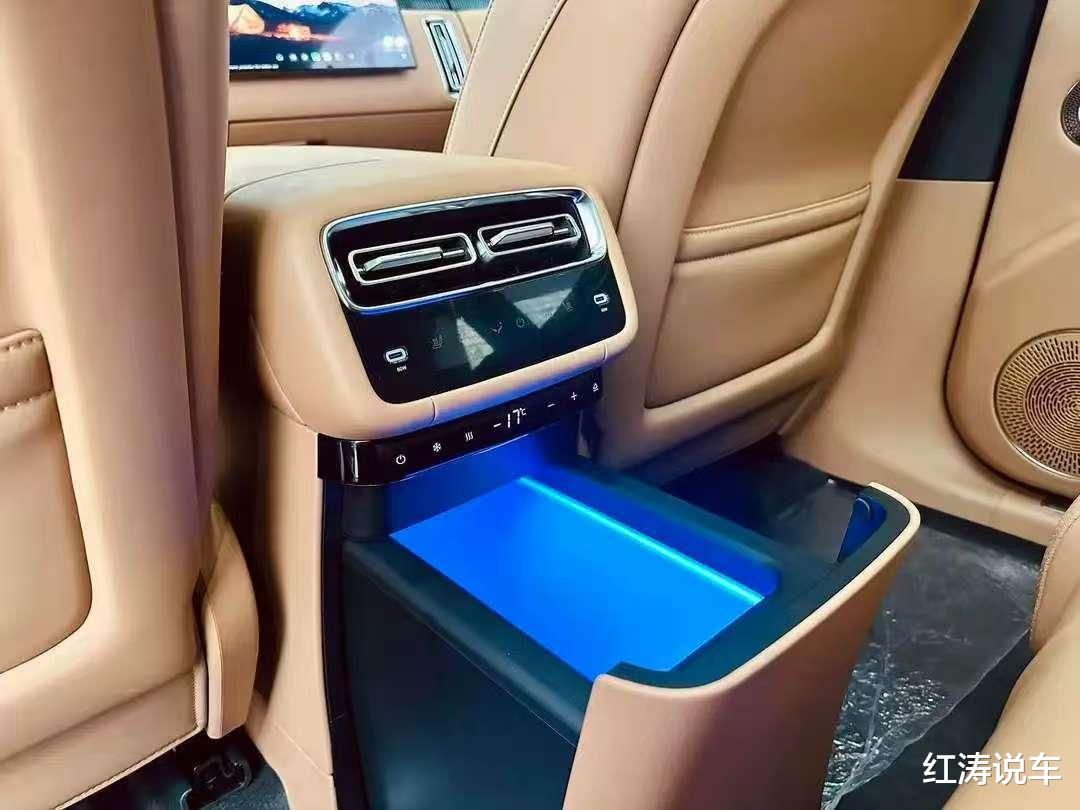 星途EX7配备AI灵犀智舱2.0,车机内置高通骁龙8295P芯片,副仪表台是上下双层结构,下面一层是储物空间,上面一层有手机无线充电面板、双杯托,对开式扶手箱,并保留了一组实体按键。