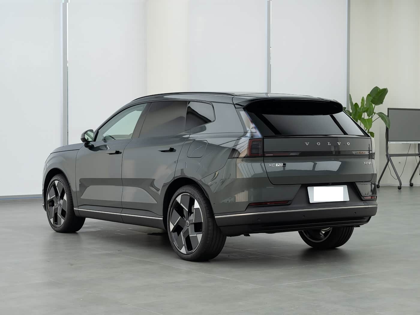 再来看车尾部分,延续北欧极简基调,造型饱满立体、层次分明,没有多余浮夸装饰,尽显豪华精致感。上方配备小型扰流板,优化空气动力学性能, subtly提升运动氛围,高位刹车灯醒目,保障行车安全。核心亮点是经典维京战斧LED尾灯,灯带采用熏黑处理,内部光影结构精致,点亮后辨识度极高,刹车、转向时呈现动态流光效果,与前脸雷神之锤大灯形成呼应。尾灯之间用哑光镀铬饰条连接,印有VOLVO英文标识,进一步拉伸尾部视觉宽度。车尾下方采用隐藏式排气布局,搭配熏黑护板与镀铬装饰,整体干净利落,贴合插混车型定位。