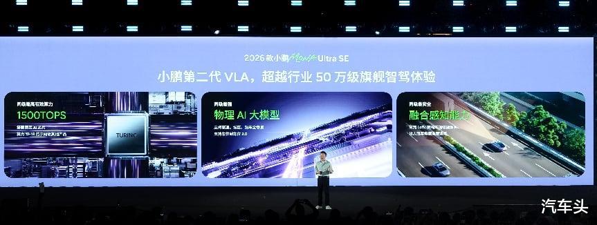 在智能驾驶方面,新车提供不同算力配置版本。Ultra SE版本搭载双图灵AI芯片,总算力达到1500TOPS,并搭载面向更高等级自动驾驶研发的VLA系统架构;Max版本则搭载单颗图灵AI芯片,总算力750TOPS,并支持后续升级。