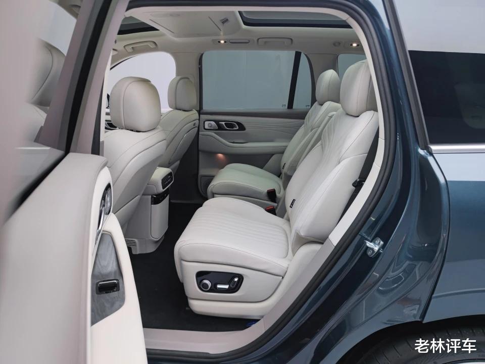 9、空间方面,不多做介绍,自己看图。我们可以看一下座椅功能,该车的前排座椅标配加热/通风,第二排座椅标配前后调节/靠背调节,第三排座椅标配靠背调节。高配车型的一二排座椅都支持加热/通风/按摩,二排座椅还多了腿托调节,行政属性拉满了。