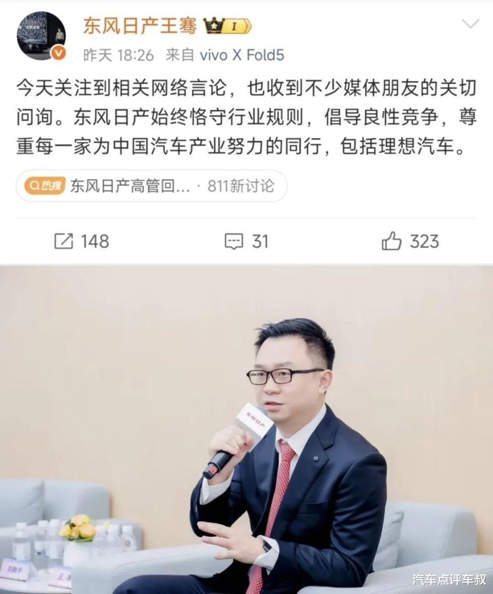 而网友们也很快联想到了刚刚发布NX8的东风日产。面对这番突如其来的公开指控,东风日产的回应倒是显得十分克制。东风日产新能源品牌总经理王骞在微博上写道:“东风日产始终恪守行业规则,倡导良性竞争,尊重每一家为中国汽车产业努力的同行,包括理想汽车。”