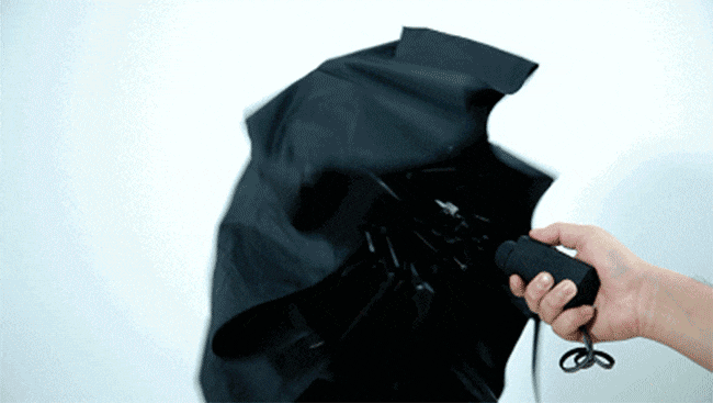 功能之二就是特制的反向伞设计,一般的雨伞收起来后,雨伞的外露面都是水滴,无论是乘车,或者是进入室内,都会到处滴水,外面下雨室内或者是车内湿哒哒,真头疼。