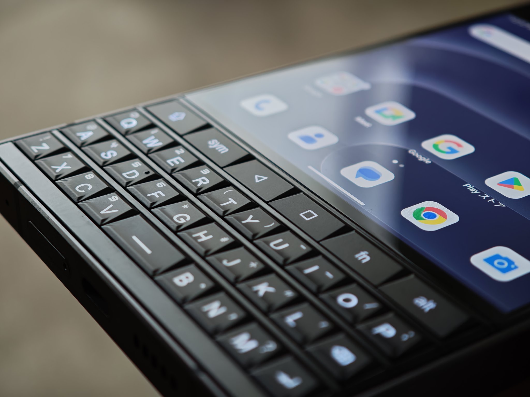这台手机正面采用全键盘设计,完全复刻了黑莓 Passport 风格,键盘布局、屏幕形态、Logo 位置全都和 Passport 相同。唯一的不同,就是这台 Titan 2 的键盘多了一排功能键。