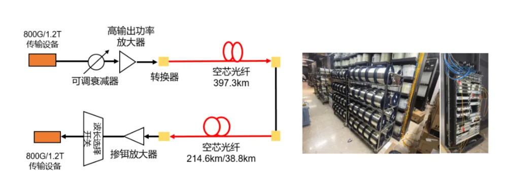 首先看空芯光纤,其最大的特点是信号在里面传输时不容易“失真”。我们抓住这个优势,让单波800G、1.2T的入纤功率分别达到36dBm、34dBm(相当于信号强度拉满),同时精准控制光放大器的噪声,既保证了“传得远”,又确保了“传得清”,硬生生用常规设备撑起了大跨距传输。