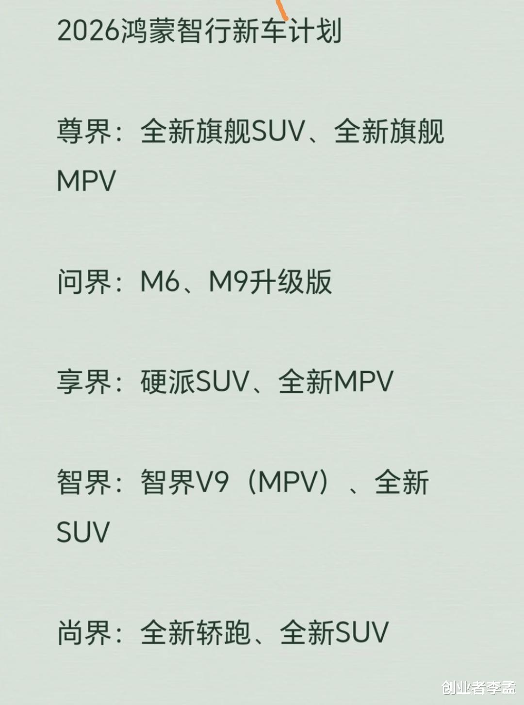 这场直播最让人热血的是鸿蒙智行的明牌时刻!2026年五界齐发力:问界补全6系,智界V9坐镇MPV,享界三款新车硬刚细分市场,尊界要拿百万级SUV/MPV对标劳斯莱斯、雷克萨斯,尚界轿跑收割年轻人。余承东连L4都敢提前剧透,这哪是发布会,简直是宣战书!就冲这架势,明年的车市有好戏看了!对此大家是怎么看的,欢迎关注我“创业者李孟”和我一起交流!