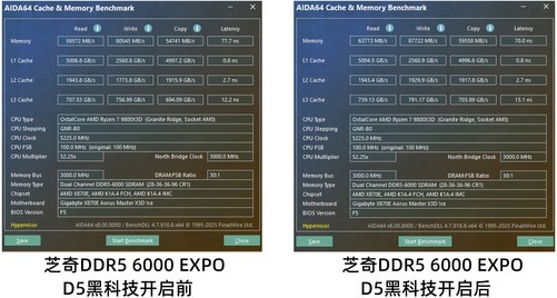 所以综合游戏来看,每款游戏都有不同的侧重点,有的看重频率、有的看重时序。而技嘉X870EAORUSMASTERX3DICE主板的作用就是通过强悍的用料布线,让各类内存都能充分发挥性能,不管是高频8000MT/s内存还是低时序6000MT/s,都能通过D5黑科技为平台提供最佳性能表现,同时保证平台稳定性和兼容性。