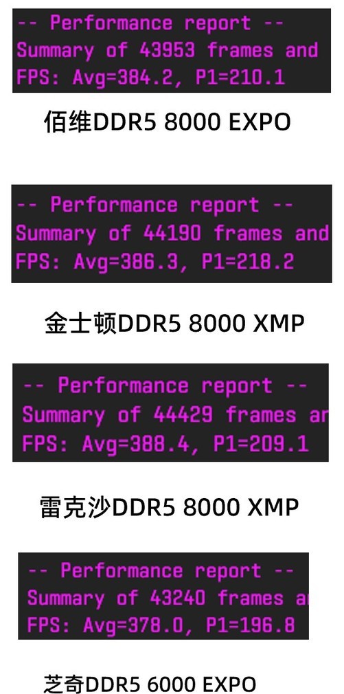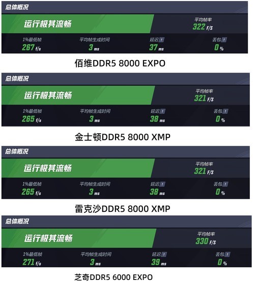 《CS2》的帧数表现就与《漫威争锋》的帧数明显不同了,这里三套8000MT/s内存帧数整体都要表现更好,不管是常规帧数还是1%Low帧都要更高,内存频率对于这款FPS影响更大。