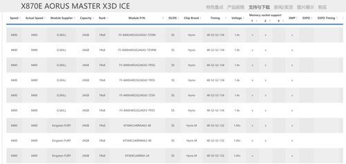最后再科普一下购买内存的技巧,内存兼容性其实相对来说比较玄学,有时候确实会碰到兼容性导致电脑开不开机或者无法充分发挥性能的问题。以技嘉X870EAORUSMASTERX3DICE主板为例,如果针对这款主板去购买内存,大家可以直接去技嘉官网看它的QVL清单,也就是技嘉官方针对这款主板提供的内存支持列表,这些都是技嘉自己实际检验过的内存。只要根据这些清单购买通常不会遇到兼容性问题。