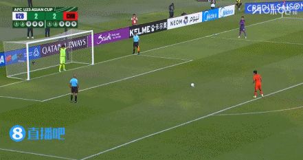 点球大战第3轮,向余望主罚命中,卡里莫夫主罚击中横梁弹出,U23国足3-2乌兹别克斯坦!↓