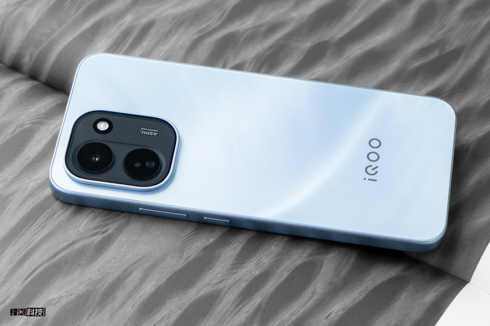 配色上,iQOOZ11有最经典的「极夜黑」和「天光白」两款配色,还有我们手上这款主打配色「沧浪浮光」,后盖在各种工艺加持下,转动手机会有丝绸一般的流动效果。