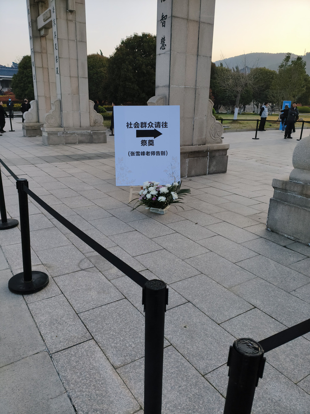 苏州殡仪馆门口立有“思念无言,谢绝直播,感恩尊重”字样,进入以后不允许拍照摄像,里面设置了专门的张雪峰老师告别会社会群众祭拜处。