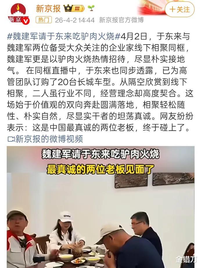但魏建军与于东来的隔空对话之所以引起全网发酵,是因为这并非刻意策划,而是两个实干家跨越行业的灵魂共鸣。
