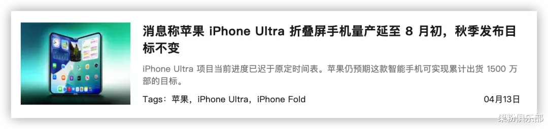 此外,据《电子时报》报道,iPhone Ultra 的量产计划已正式确定延期。