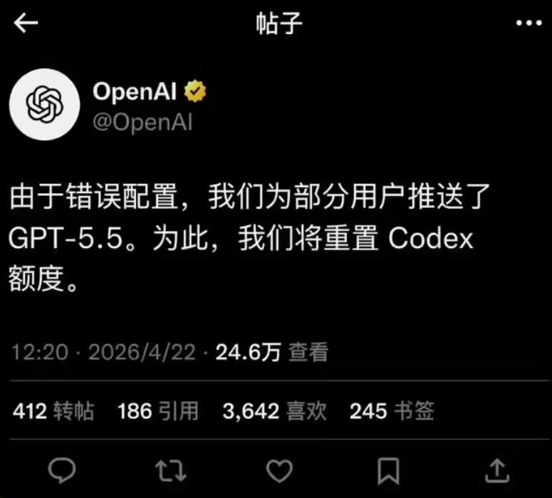 IT之家 4 月 22 日消息,OpenAI 今天(4 月 22 日)发布 ChatGPT Images 2.0 生图工具外,其偷跑的 GPT-5.5 模型迅速成为网友热议焦点。根据部分网友反馈,在 Codex CLI 终端界面,意外出现了 GPT-5.5 模型,显示为“最前沿的智能体编程模型”。