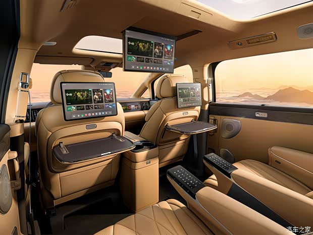 座椅方面,新车前排座椅支持电动调节、加热、通风和按摩功能,二排座椅可选装升级零压云绒座椅,支持16点按摩、通风和加热等功能,第三排座椅也会配备通风、加热和电动调节功能。二排座椅还支持NFC灵动控车,用手机碰一下扶手便可以操控后排娱乐屏及座椅功能。其它配置方面,其还提供后排小桌板、30扬声器帝瓦雷音响系统以及7.5L智能冷暖箱等。