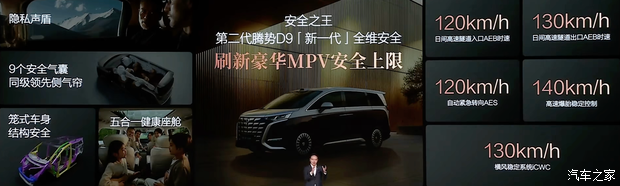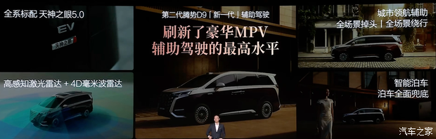 [汽车之家新车上市]4月27日,第二代腾势D9正式上市,新车共推出6款车型,售价区间为35.98-46.98万元。新车采用全新混动MPV专属平台,针对外观、内饰以及动力系统均进行了升级,其中比较吸引人的包括第二代刀片电池+闪充技术、天神之眼5.0以及新一代AI智能座舱等。