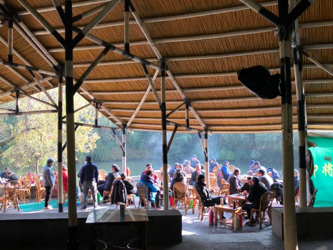 我每次去这个小亭子,就是一个公园里面给老头老太太们喝茶的,看上去完全不起眼的小亭子。一杯茶大概就是20块钱,会给你一个水瓶,你可以在里面待一天待半天。