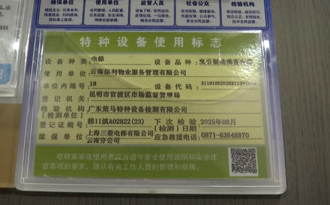 据官渡区市场监督管理局介绍,因上述事件造成较大社会舆情,执法人员根据反映情况到该小区进行现场核查,查看该物业公司监控视频显示:2025年8月14日15时6分,老人和幼儿从14楼进入电梯下往1楼,电梯在运行到12楼时出现故障,停止运行,业主被困。