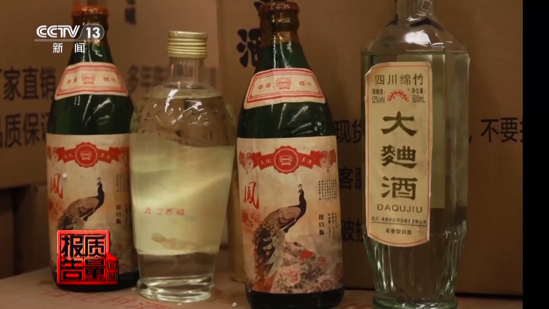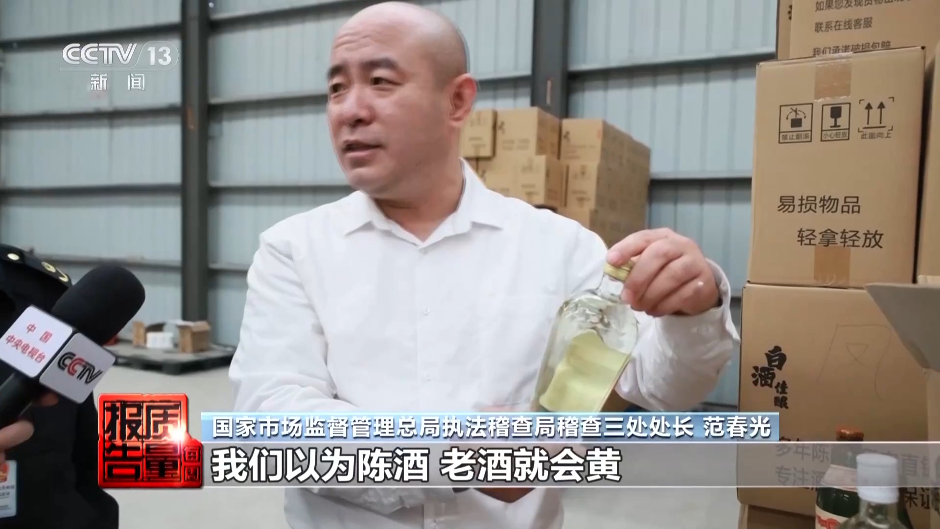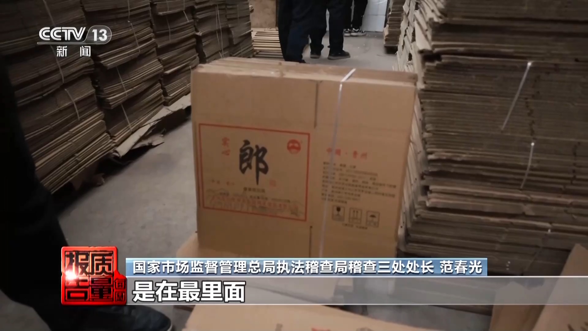 国家市场监督管理总局执法稽查局稽查三处处长范春光:金兴大曲少两个点是全兴大曲,五粮酒改一个字叫五粮液。这些都是打擦边球。像郎酒这种纯粹假冒的包材在最里面,这种是铁证,就是侵权的,没什么可说的。
