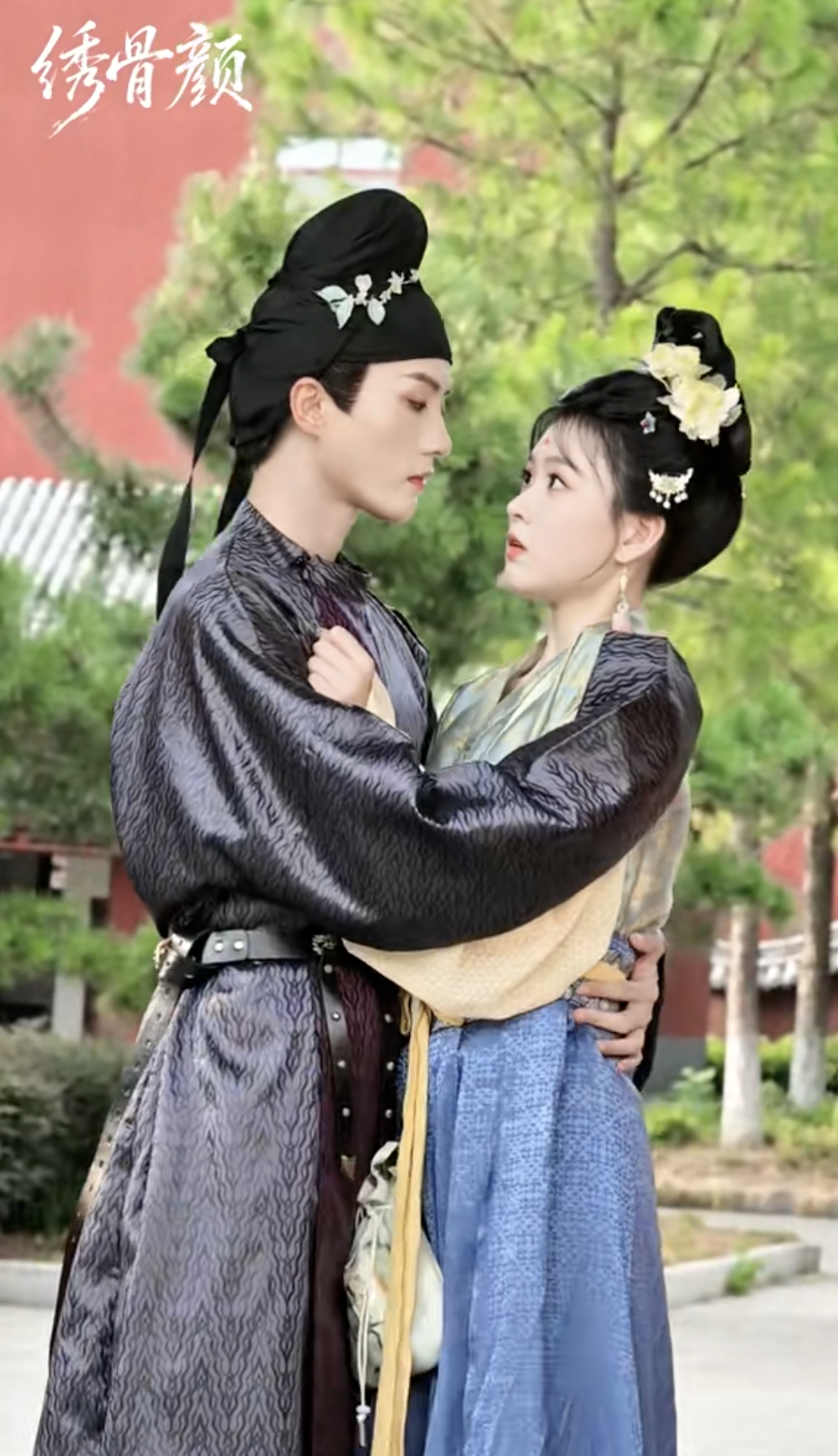 但即便是套了宽大的古装戏服,也能看得出来他的身板很小,比一米六多的女主高不了多少。