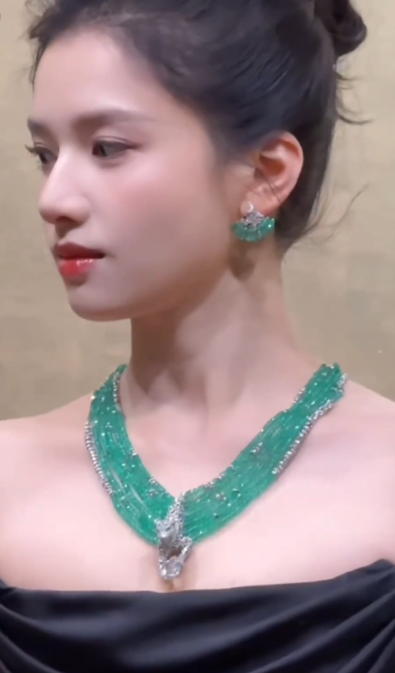 正因为如此,她才能够驾驭镶嵌800多颗哥伦比亚祖母绿的高级珠宝,也不会被这样的饰品压住自己的风头。