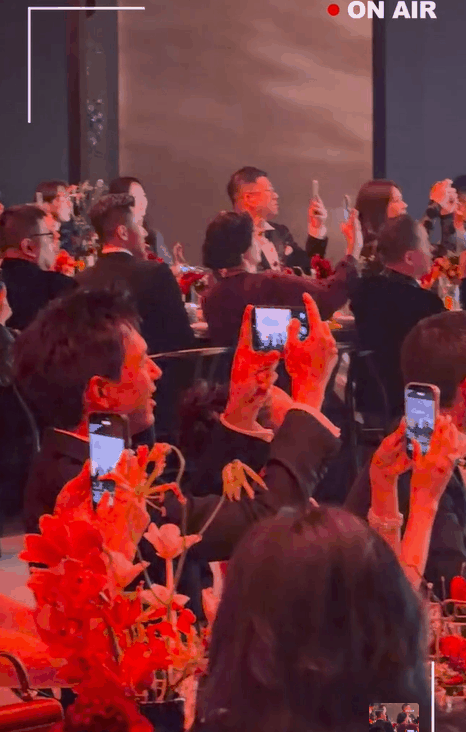 台下的李现、巩俐纷纷举起手机拍照,笑得合不拢嘴,氛围太好了。