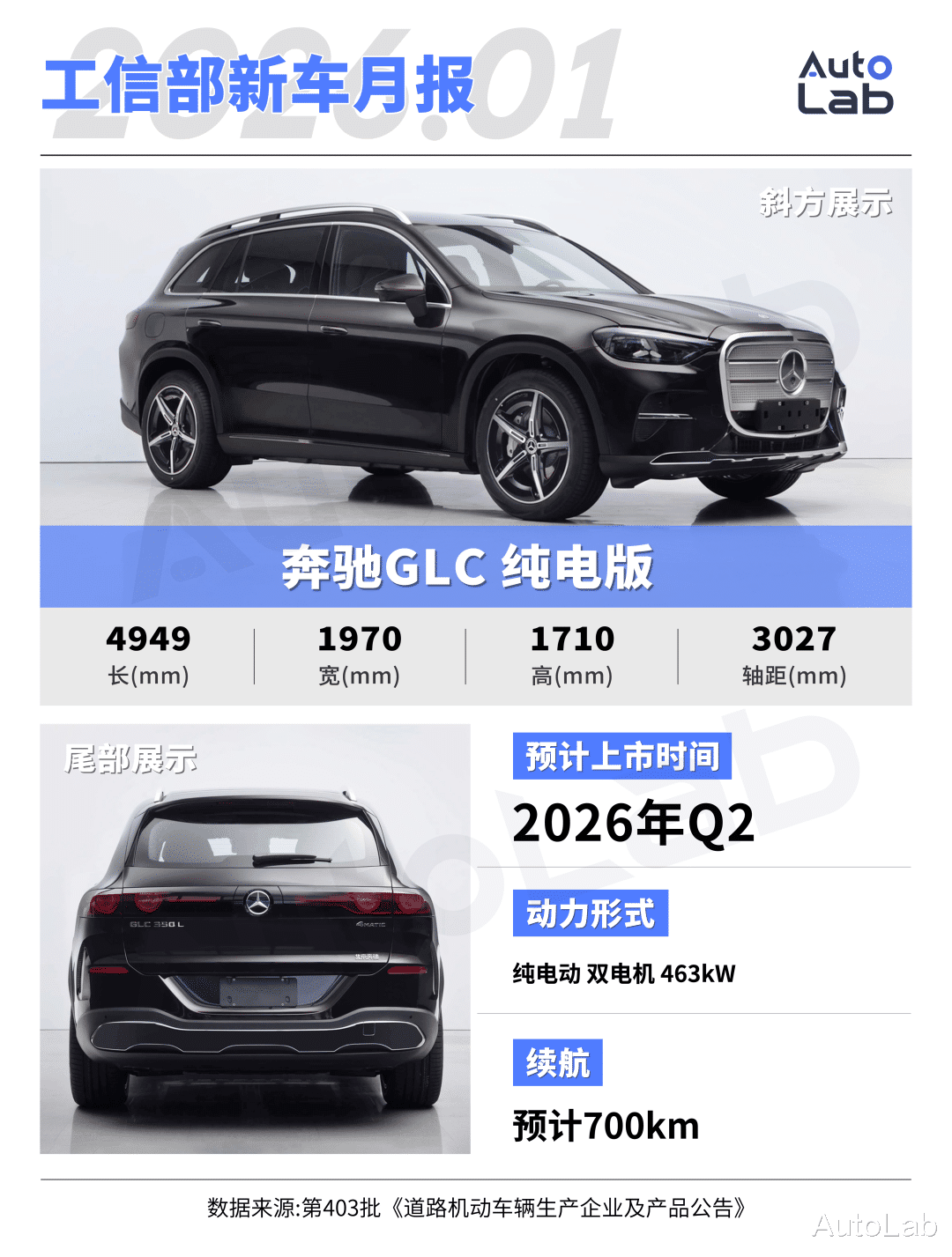 动力上,纯电GLC则是基于全新MB.EA纯电专属平台打造,目前仅申报了350L尾标的车型,配备双电机,最大功率463kW。