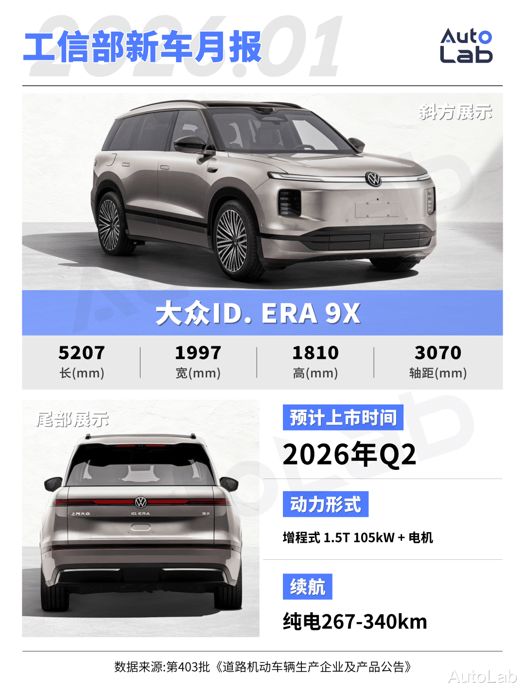 大众ID. ERA概念车终于迎来了量产版本,正式名称确定为了ID. ERA 9X。