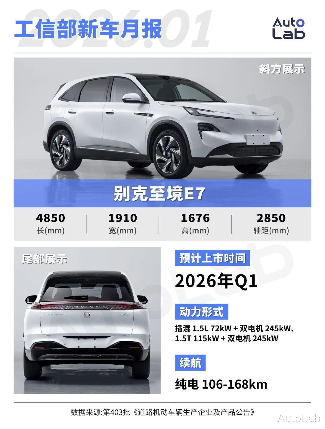 动力部分,别克至境E7则是采用了插混动力,提供1.5L和1.5T发动机可选,匹配20度和32度两种电池规格,纯电续航最高168km。