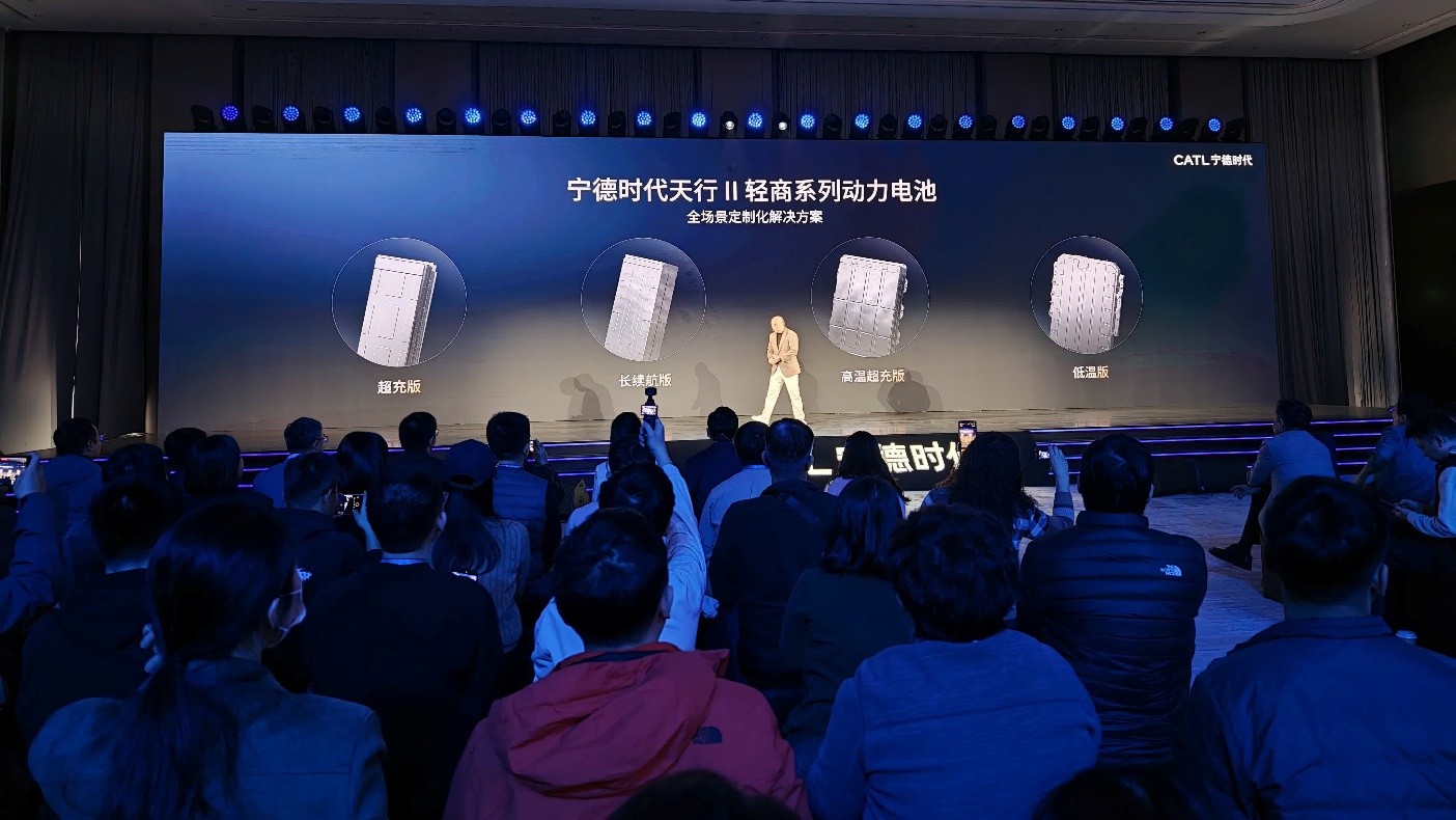 相反,在宁德时代最近召开的钠离子电池发布会上。发布的天行二代轻商全场景定制化系列解决方案,正是钠离子电池的首次大规模量产与商用。不过,是应用在商用车领域。