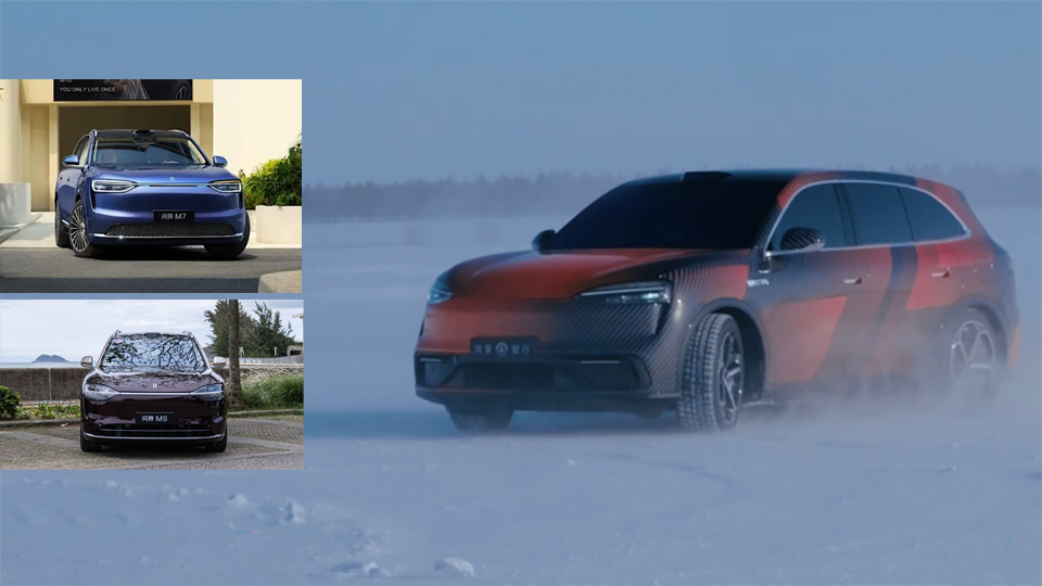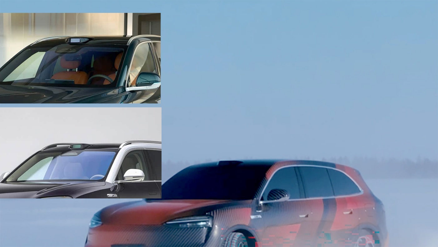 自身产品表现上,配置上对标问界M7是大概率事件,也就是乾崑ADS4.0、鸿蒙座舱5、途灵底盘、巨鲸电池这些并不会缺位。但,继续从冬测冰雪测试的图片中寻找关键要素,能够发现,车顶的激光雷达相比最新的问界M7更扁平化。