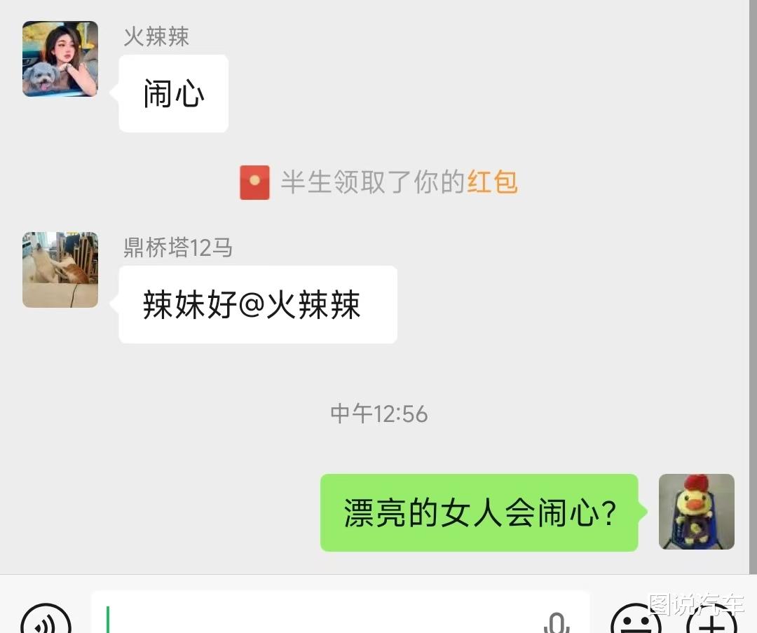 第三位:辣妹,最活跃的女车主,没有之一,主要特点就是大长腿,别的……我也没记住?好像她天天盯着隔壁家的宾利、大G、凯迪拉克,如果没猜错,这家伙肯定喜欢钱,囔,我也喜欢……不过,发我红包最大的应该就是她。