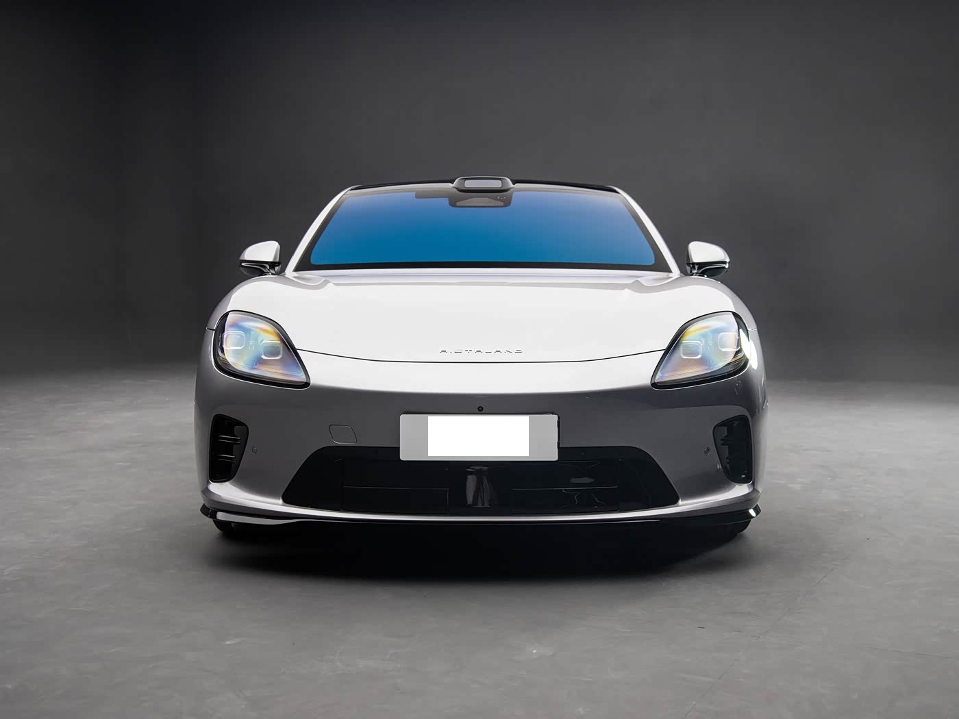 我们首先来看新车的外观设计方面,启境GT7的前脸设计极具攻击性,下压式车头搭配行业量产最大的1975mm蚌式铝合金前舱盖,光影流畅无割裂感,进一步强化了整车的宽体视觉与运动张力。前脸采用封闭式纯电专属设计,配合造型狭长的“启境灵眸大灯”组,灯组内部配备双透镜结构与上下两条日行灯带,中间还有一段机翼造型的小蓝灯,点亮时如瞳孔般灵动。更引人注目的是,大灯搭载了最新一代HUAWEI XPIXEL双百万像素智慧投影大灯,不仅照明效果出色,还能投出各种画面,甚至可以投电影,科技感直接拉满。前保险杠下方的黑色主动进气口,两侧带有导流槽造型,既提升了空气动力学性能,又增添了运动气息。