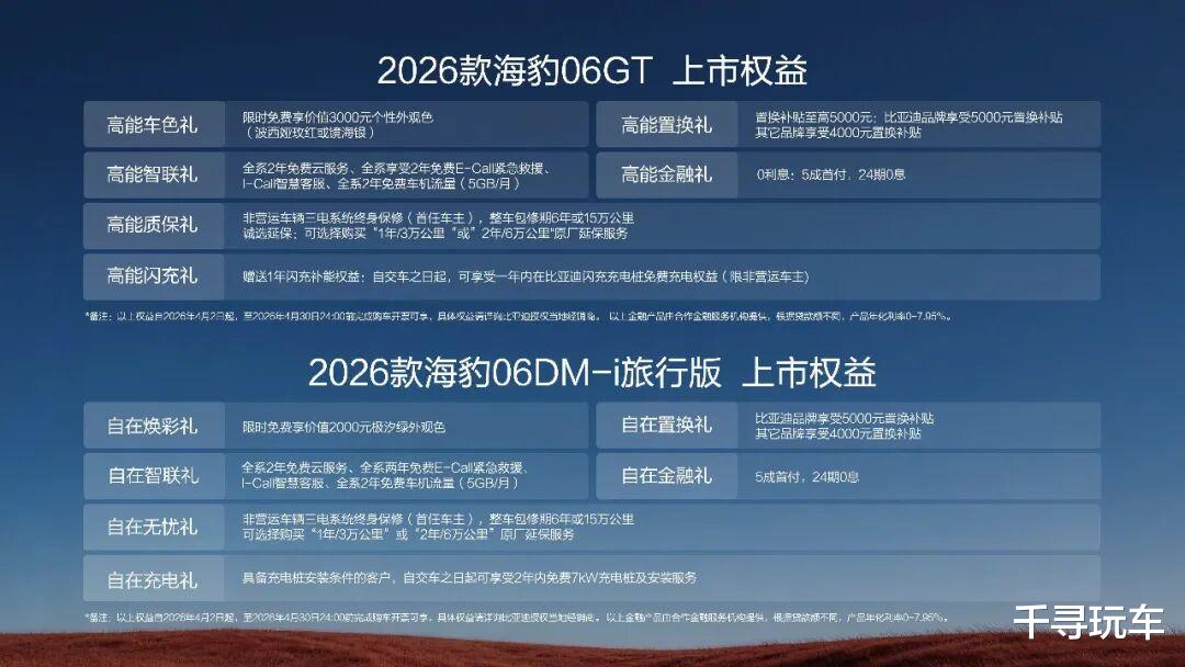 4月2日,比亚迪海洋网双车齐发——2026款海豹06GT与2026款海豹06DM-i旅行版同步上市。海豹06GT去年刚出道,海豹06DM-i旅行版也是去年才推出的。按理说,年度改款嘛,一般就是加点配置、换个颜色、修修bug,厂家应付一下,消费者也没太多期待。