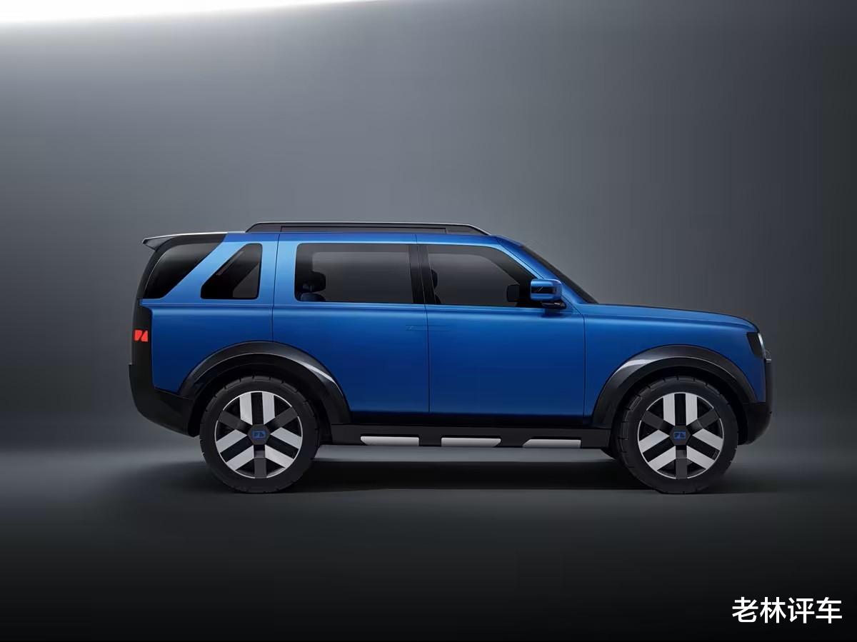 车侧部分,整体以平直线条为主,车身姿态很高,谈不上好看,也谈不上难看。