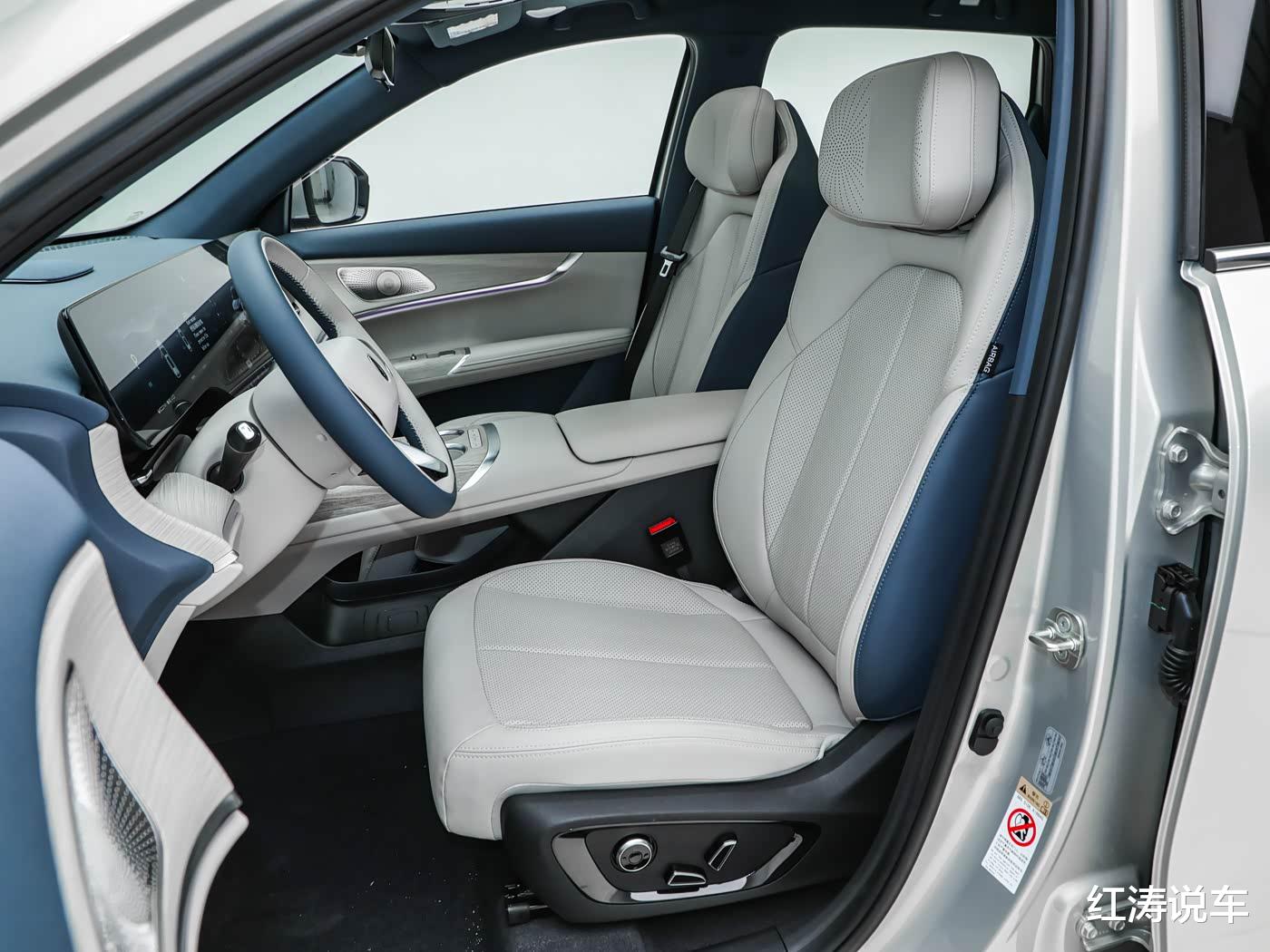 长安CS75 PLUS HEV的前排座椅是一体式风格,具有电动调节、座椅加热和通风功能,并且提供“女王副驾”,拥有腰托调节和电动腿托,后排空间非常宽敞,座椅填充厚实,提供折叠小桌板、全景天窗、电动尾门等配置。