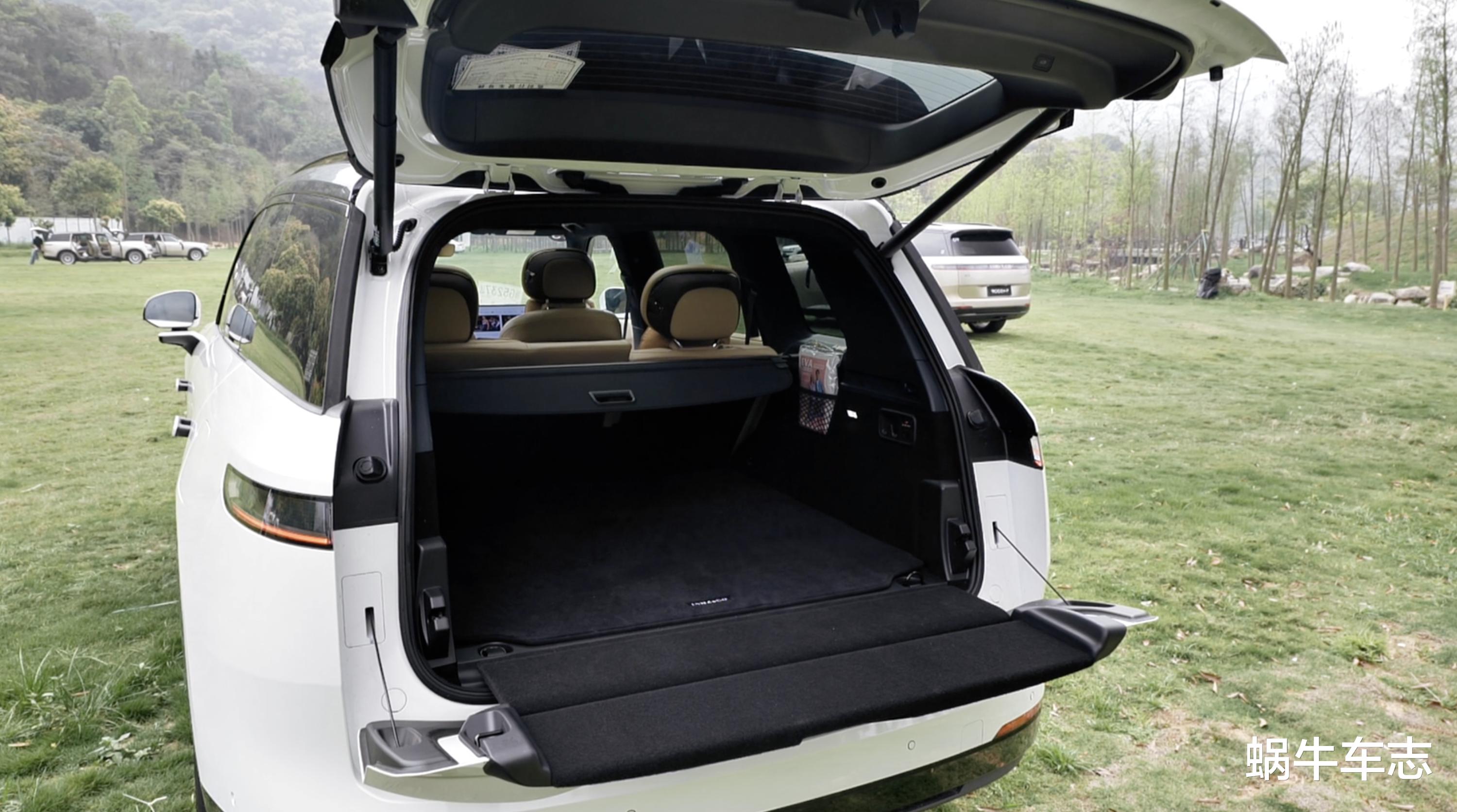 后备箱采用“天地门”开启方式,可以坐3个人在上面看星星赏月亮,标准容积为1030L,二排前移后可扩展至1215L。