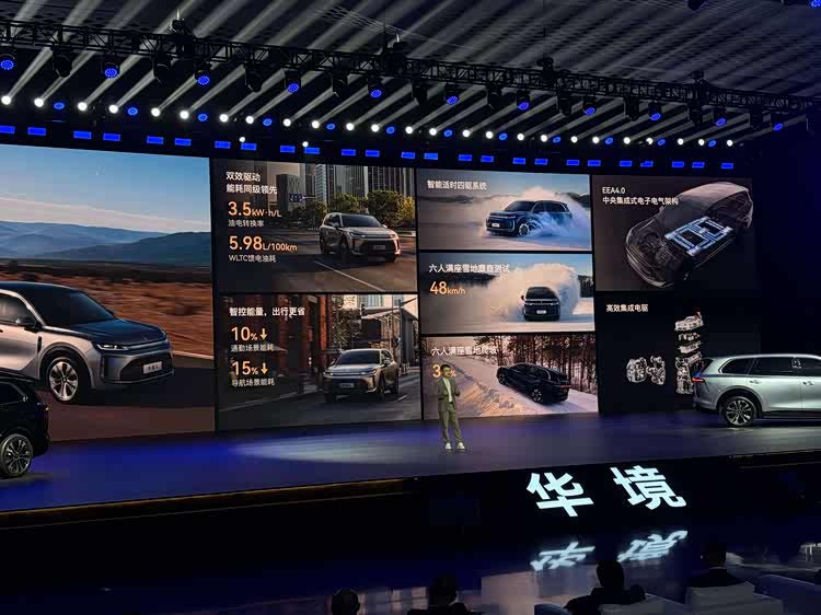 动力方面,华境S使用了灵犀动力3.0系统,采用了插电混动的动力形式,混动专用发动机为1.5T涡轮增压发动机,最大功率105kW、最大扭矩220N·m,电机为前后双电机,电机总功率为386kW、总扭矩达到了620N·m,官方0-100km/h加速时间为5.2s,WLTC最低荷电状态油耗为6.18L/100km。