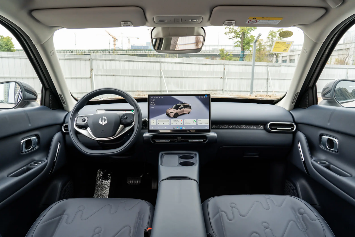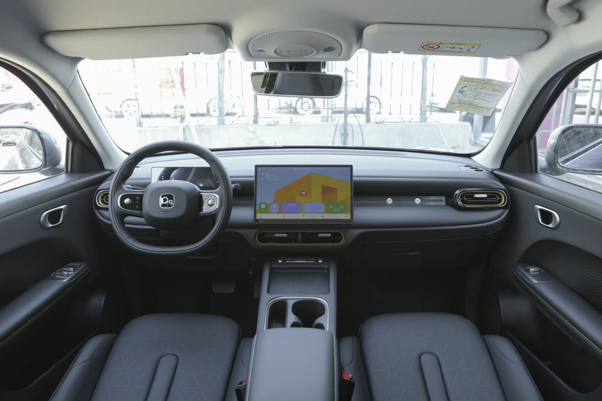 奇瑞QQ3 EV的内饰配置更加小巧精致一点,热爱版中控屏幕大小为12.8英寸,分享版的中控屏大小为15.6英寸,还搭载了高通骁龙8155芯片,支持HUAWEU HiCar、CarPlay、Carlink手机互联映射,车机系统同样接入了AI大模型,在趣味性和语音交互上可能更胜一筹。