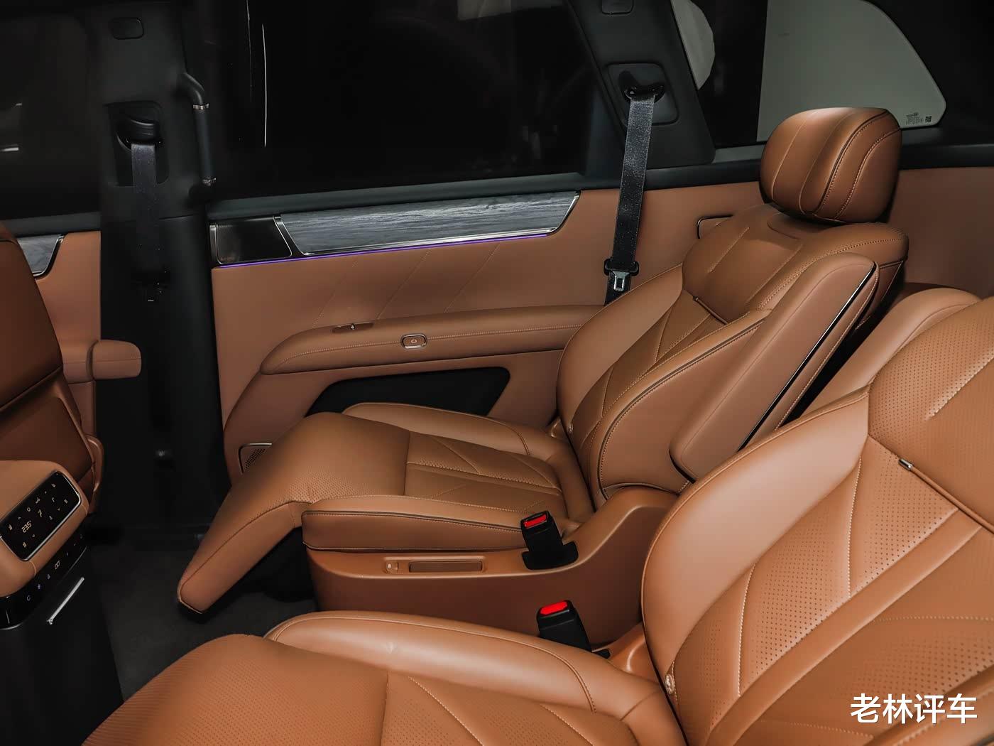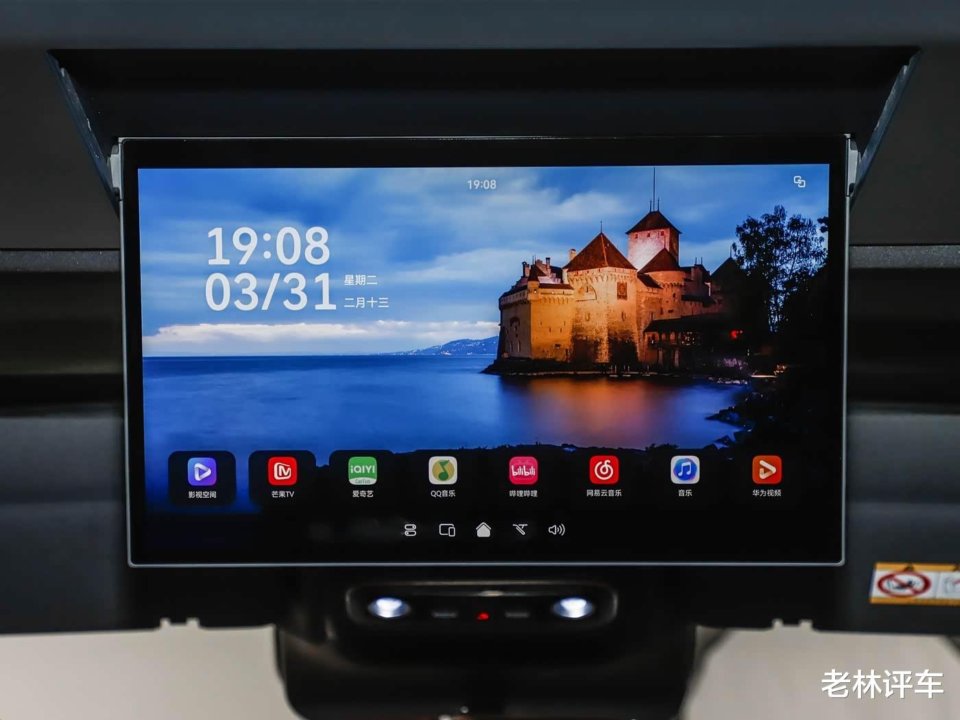 尺寸方面,华境S的长宽高分别为5235*1999*1800mm,轴距为3105mm,定位大型SUV。该车采用了2+2+2的6座布局,车内空间还是很宽敞的。配置方面,如图所示,该车配有15.6英寸后排吸顶娱乐屏幕、车载冰箱等,一二排座椅都支持加热/通风/按摩,第二排座椅支持前后/靠背/腿托调节,第三排座椅支持靠背调节,乘坐体验偏舒适。