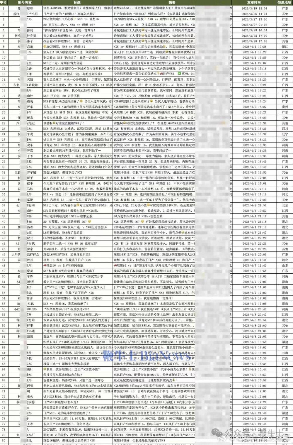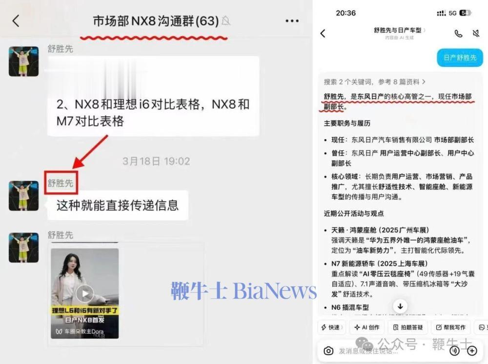 李想发布的贴图显示了全国各地的水军发布拉踩理想汽车的帖子,以及东风日产内部沟通群。